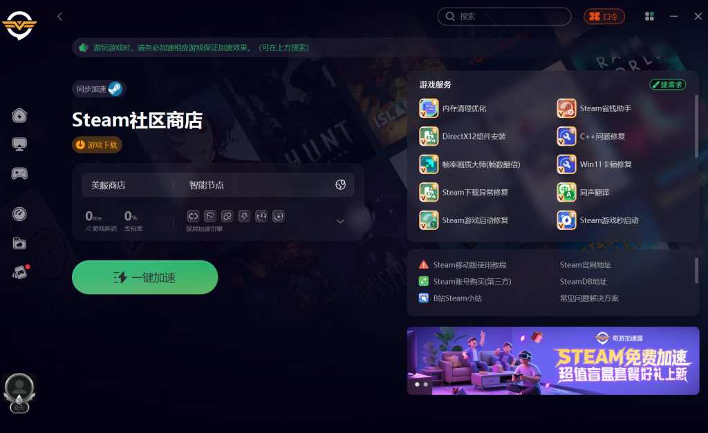 由于 Steam 服务器位于海外,为避免网络延迟影响操作,建议先通过奇游加速器对平台进行加速优化。加速完成后登录 Steam 账号,点击顶部菜单栏的 “Steam” 选项,在下拉列表中选择 “设置”;进入设置界面后切换至 “界面” 选项卡,勾选 “在地址栏中显示 SteamID” 并保存设置。返回个人资料页面后,地址栏中以 “7656” 开头的 17 位数字串,即为该账号的 SteamID。