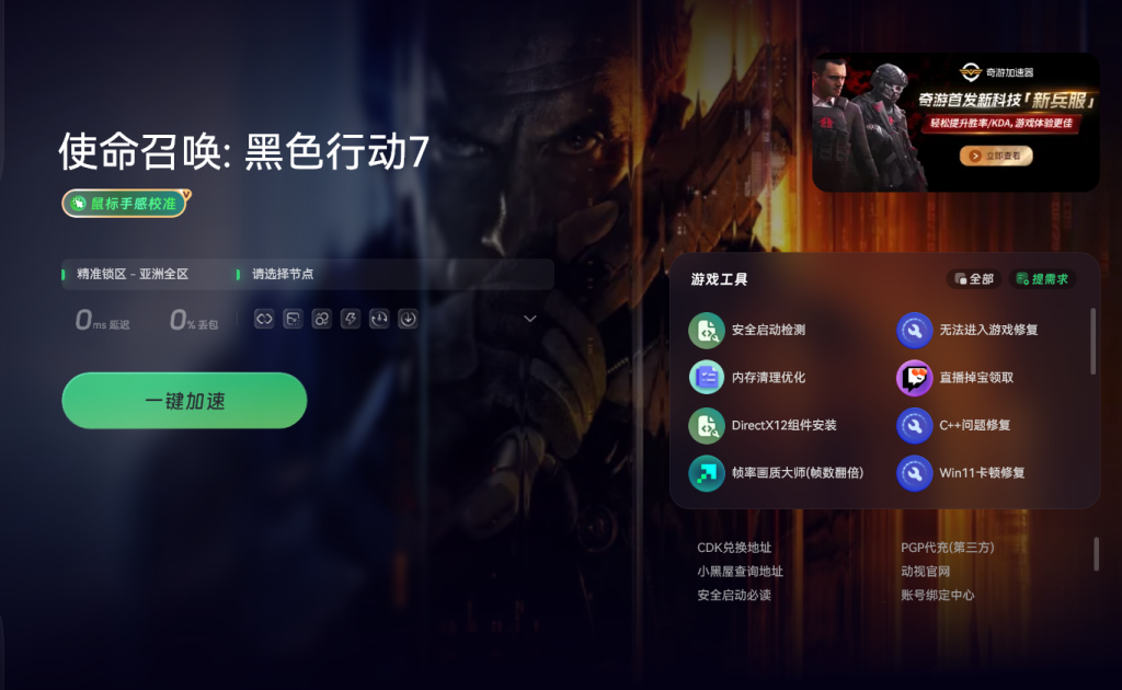 部分启动失败或闪退问题与网络延迟导致的资源加载异常有关。当玩家通过直连方式访问游戏服务器时,可能因数据包丢失触发安全验证失败,进而引发Dll文件调用错误或配置锁定。通过奇游加速工具可以有效降低因网络波动导致的资源加载中断风险,选择低延迟节点,确保游戏文件完整下载与实时验证。