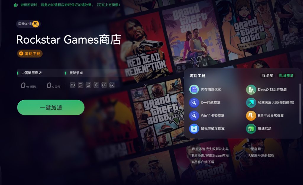 由于R星平台服务器对访问实施了严格的限制,国内玩家在连接时可能会遇到障碍,导致无法登录或请求处理失败。使用网络优化工具,比如说奇游加速工具,可以有效改善网络连接,突破地域限制,从而解决因网络问题导致的平台访问异常。