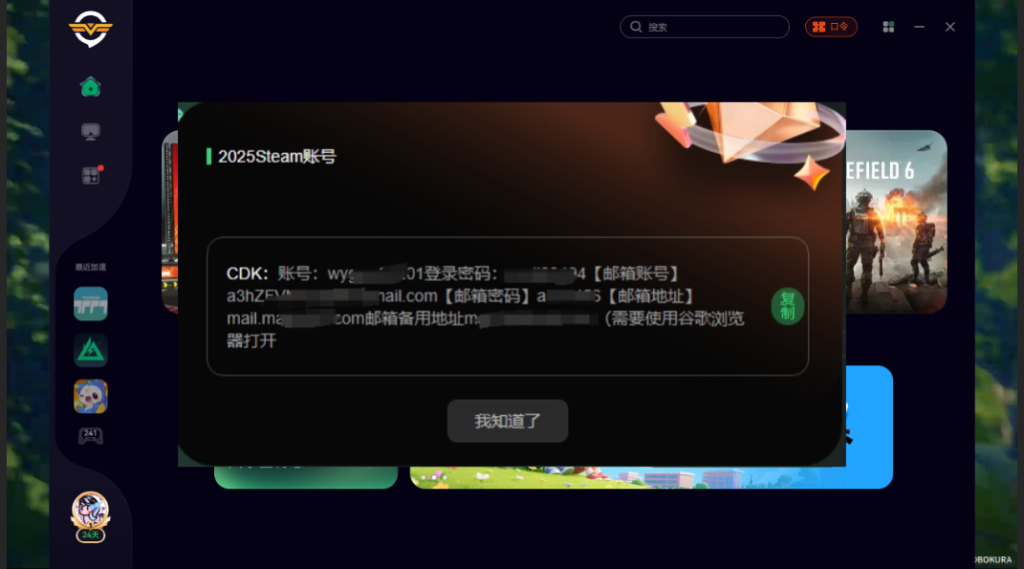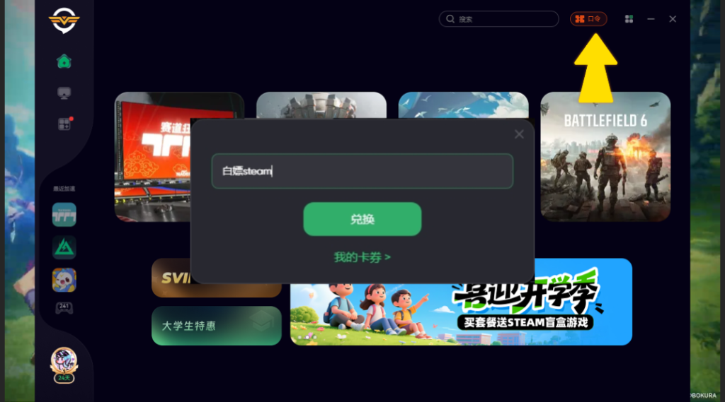 这边小编给大家准备好了一波外区Steam账号,打开奇游,点击口令输入【白嫖steam】