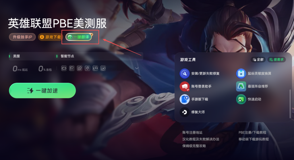 更完之后先别急着点启动游戏。这时候回到加速页面,找一下有没有“一键翻译”或者“汉化”功能。使用这个功能,可以把游戏内的界面文字变成中文,这样玩起来就方便多了。