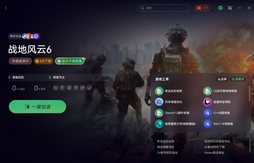 在打开《战地风云6》过程中,打开奇游,搜索”战地风云6″。优化电脑本地网络的环境,从而解决因网络问题导致的游戏无法启动或安全启动未启用等情况,顺利解决问题。