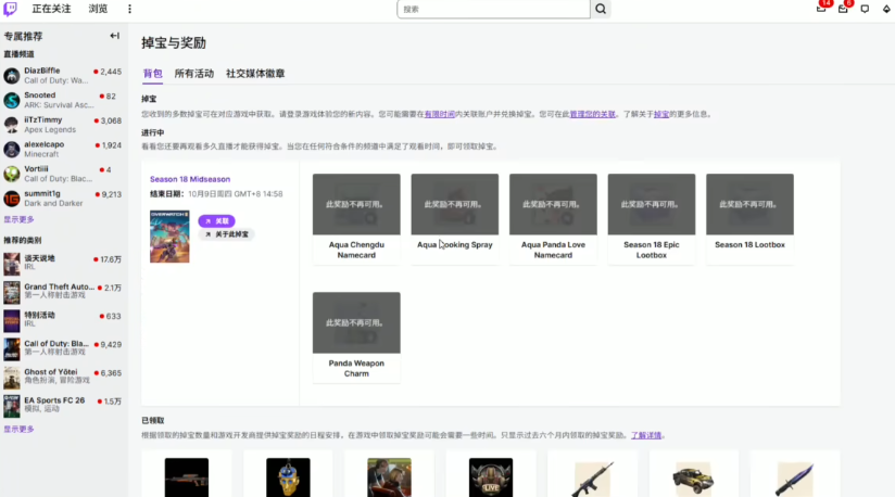 如果活动还没正式开始,页面上可能还看不到,但流程是一样的——等开始后,你点“前往参与中的直播频道”,找一个标签里写着“Drops Enabled”的直播间,点进去挂着,系统就会自动记录观看时长。