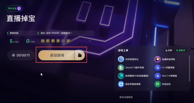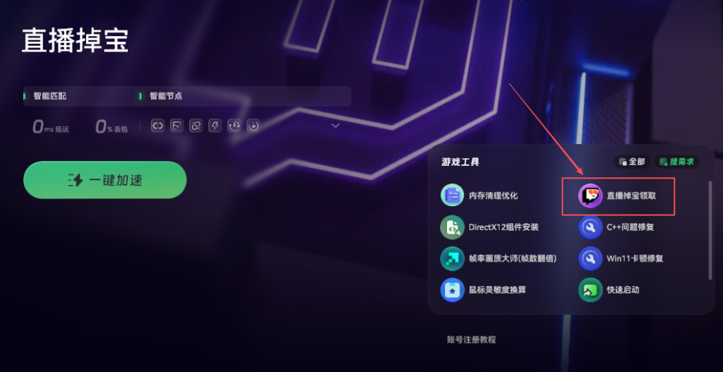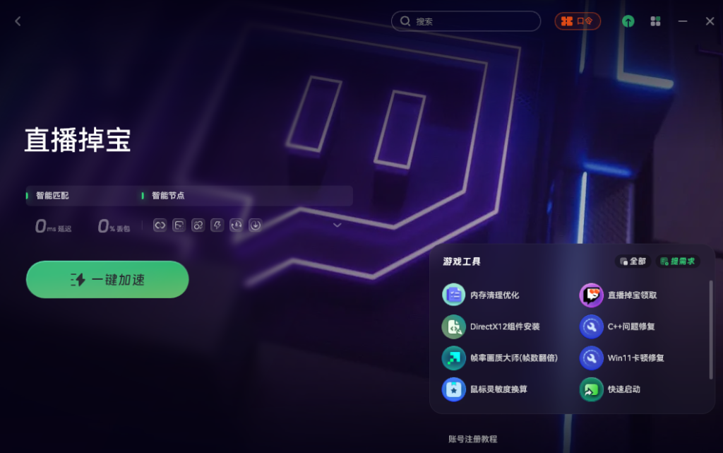 首先,国内直接访问Twitch是打不开的,需要用一个加速工具。比如可以打开奇游,搜索“直播掉宝”进行加速。