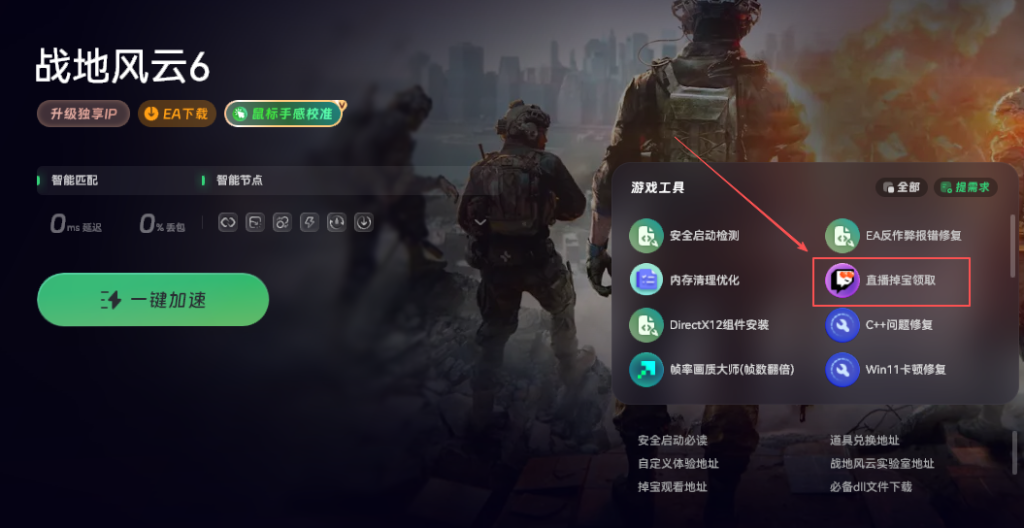 这次奖励掉落的时间是从北京时间10月11号0点开始,一直到17号晚上11点结束。想领取的话,需要先打开奇游加速工具,然后对《战地6》进行加速。