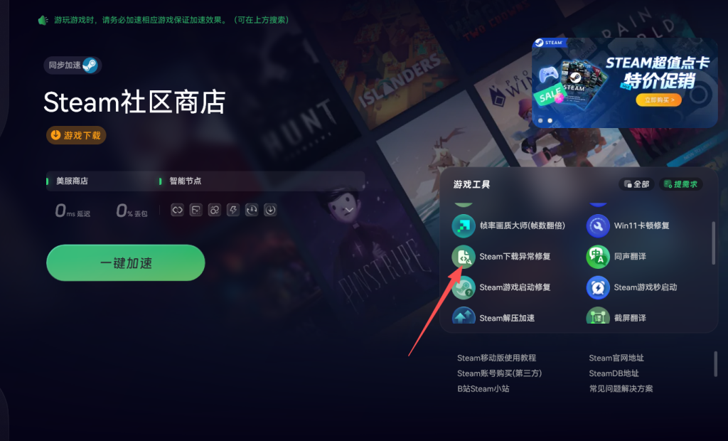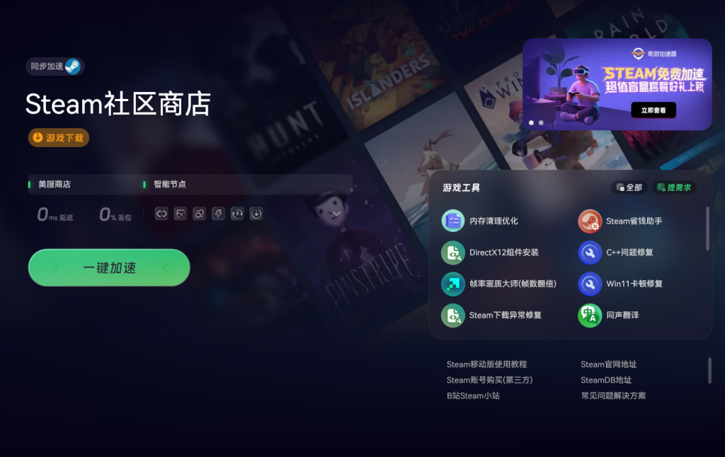 若加速后仍存在问题,可能是Steam客户端文件损坏或本地网络配置异常。此时可借助奇游加速工具内置的Steam平台修复功能进行一键检测与修复。自动扫描并修复DNS缓存、Hosts文件错误及网络协议异常,无需手动操作即可恢复商店正常访问。