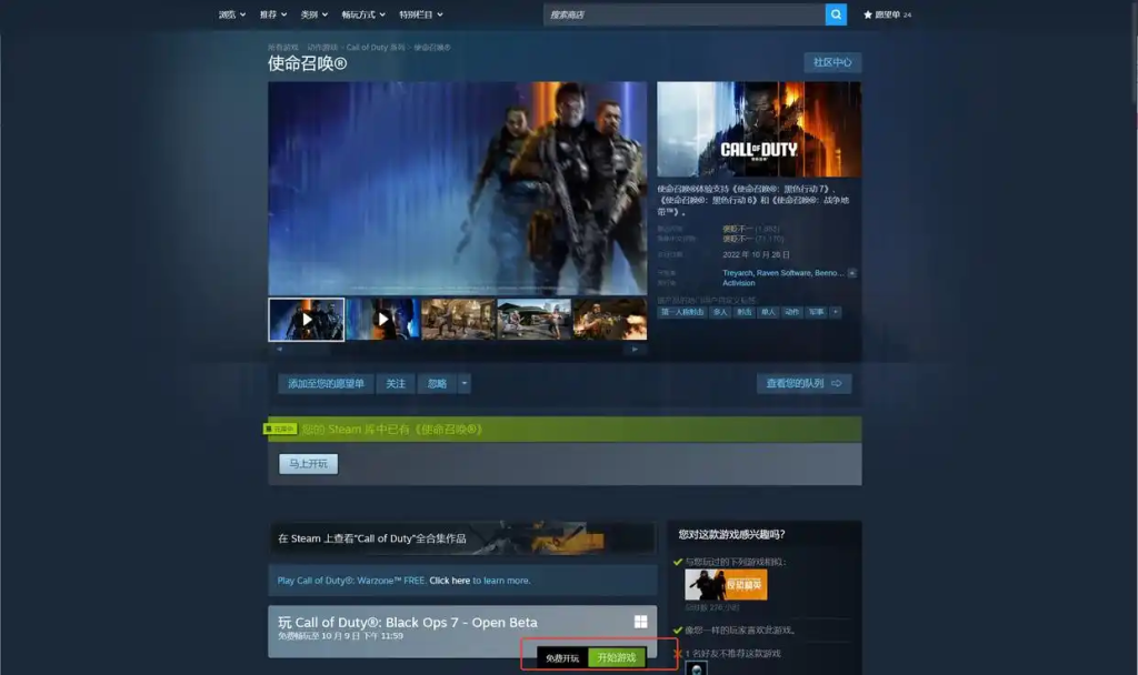 参与试玩需先通过加速器优化网络环境,随后打开 Steam 平台,搜索 “使命召唤”