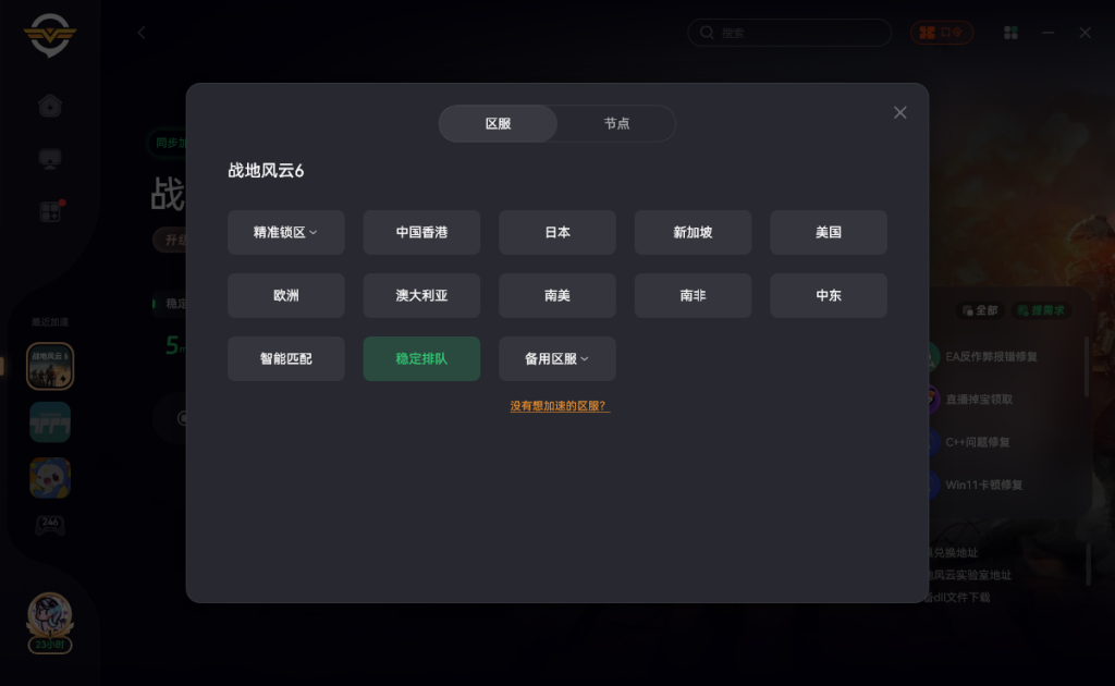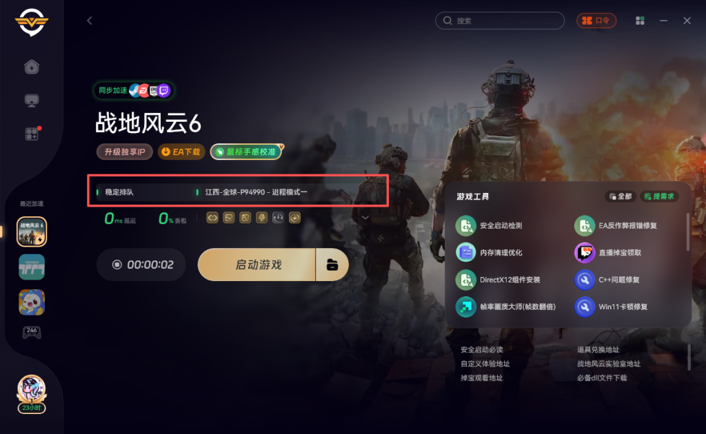 出现排队进不去、时间长、掉线一般是网络问题导致的,奇游优化了专门的线路,打开奇游,加速《战地风云6》稳定排队节点可以大幅降低排队时间