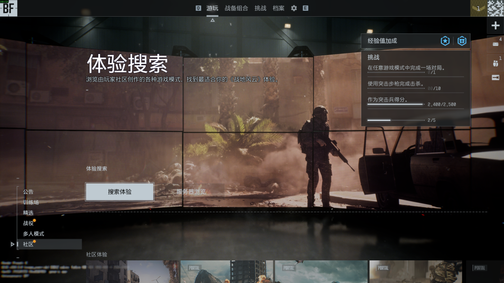 1.进入游戏后,点击【社区】栏中的【搜索体现】项