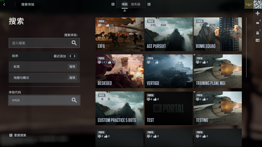 2.在左侧【体验代码】中,输入门户代码并点击搜索