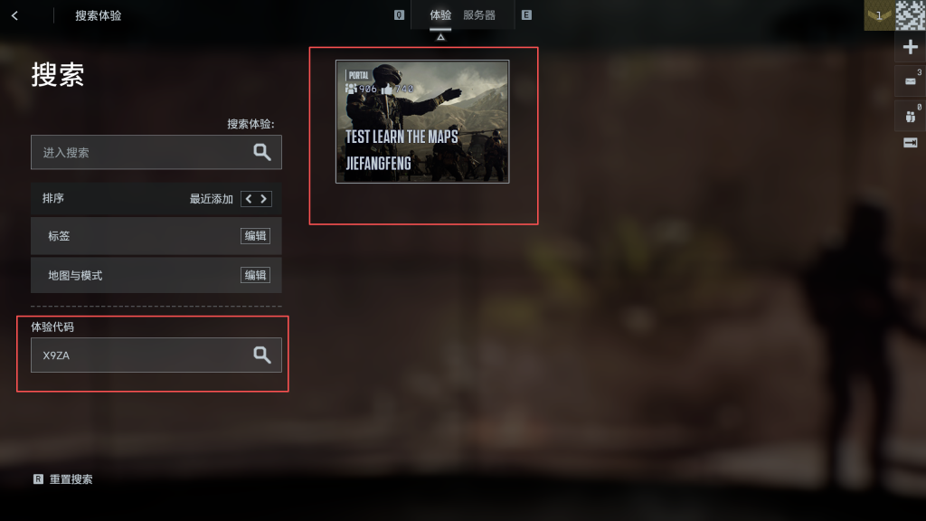 在左侧【体验代码】中,输入门户代码并点击搜索