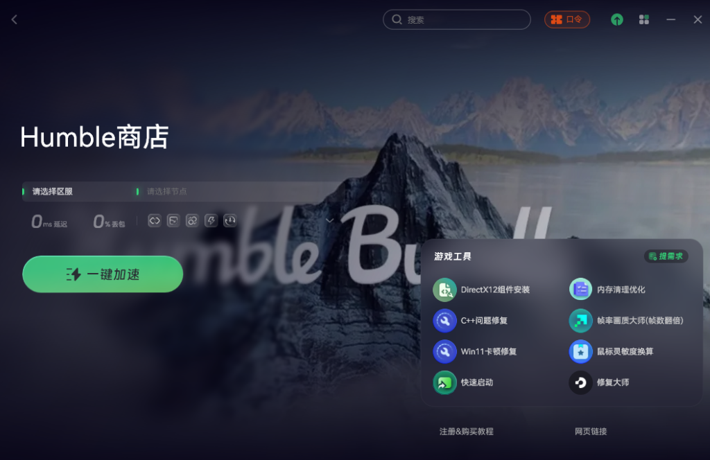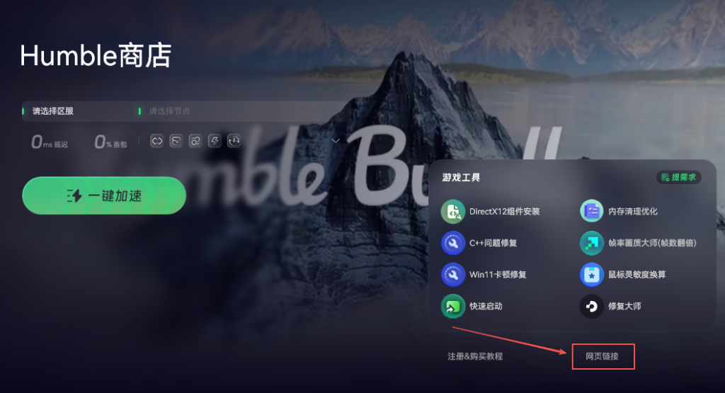 首先要注意,HB官网直接访问可能会卡或者打不开,打开奇游加速工具,搜索“Humble商店”,选一个国服节点加速就行。