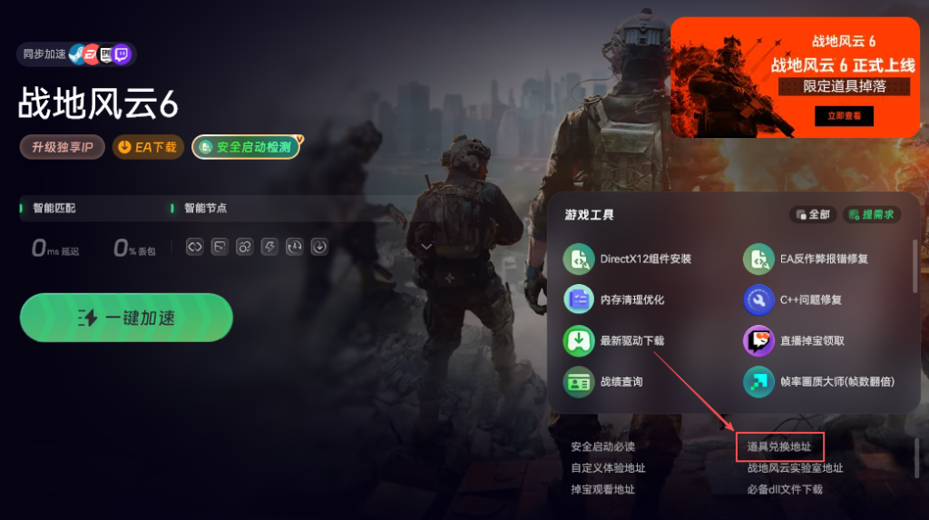 加速成功之后,一般页面右侧会有个“道具兑换”或“CDK兑换”的入口,点进去会跳转到EA的兑换网页。