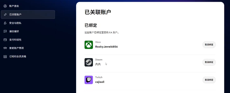 在EA平台点击个人头像进入“档案”设置,找到“连接”或“关联账号”选项,把Steam账号连上去,这样奖励才能正常同步。