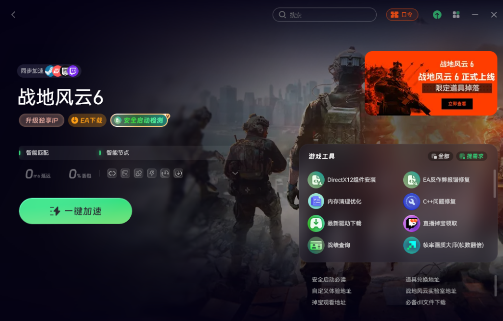 首先,打开奇游加速工具,对《战地6》进行加速。