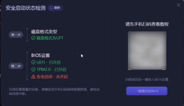 加速完成后,它一般会自动帮你检测“安全启动”是否已开启,如果没开,里面也会有清晰的图文教程教你如何操作,扫码就能看。