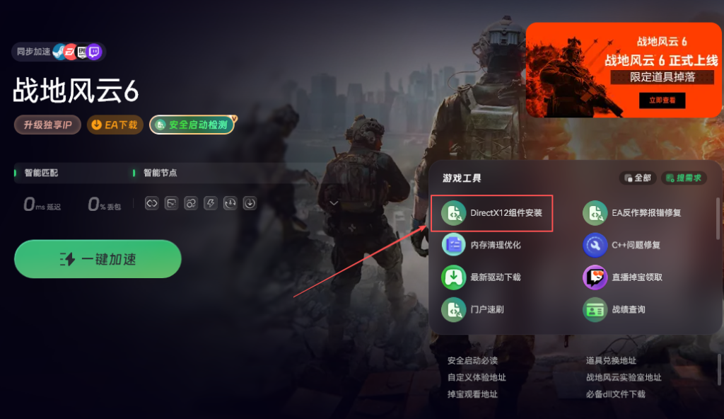 接着,在加速工具箱里找到“DX组件修复”或类似功能,点击下载并安装,完成后通常就能解决DX报错问题了。