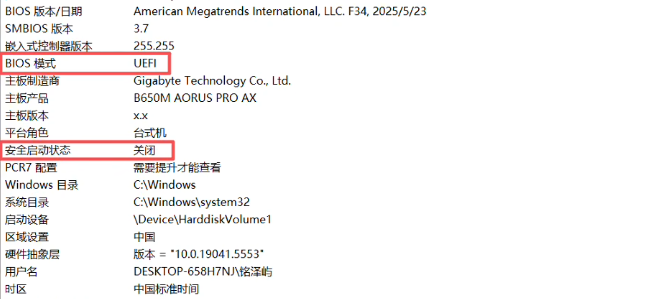 这时会弹出一个系统信息窗口,你需要重点看两项:“BIOS模式”是不是显示为“UEFI”,以及“安全启动状态”是不是“开启”。如果显示为关闭,那就需要手动进BIOS里开启。