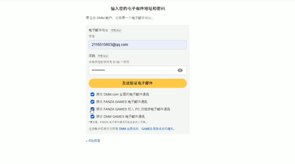 在注册页面中,输入邮箱地址和密码,然后点击发送电子邮件。随后登录邮箱,查收并输入验证码完成注册。