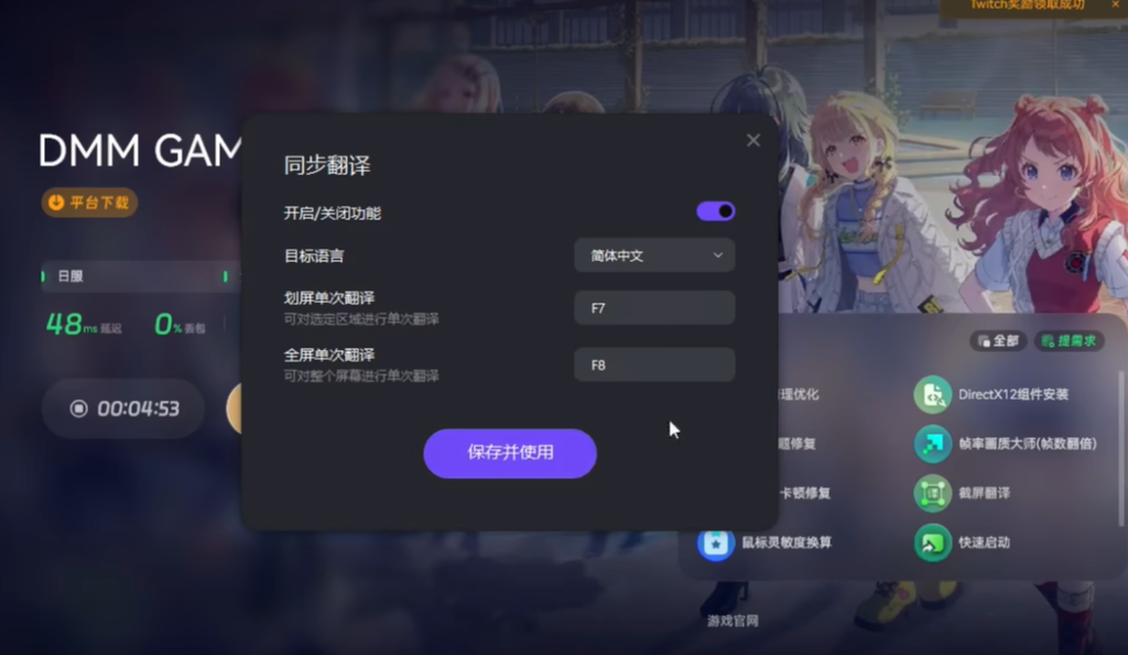 奇游加速工具右侧还提供了截屏翻译功能,可以帮助玩家们轻松理解游戏内容。
