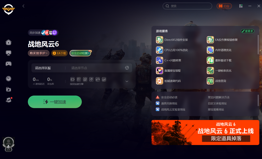第一种解决办法是优化网络环境。联机功能对网络质量要求较高,网络延迟或数据丢包会直接导致匹配、组队失败。建议使用奇游加速器优化网络,该加速器可通过智能线路选择技术,为游戏搭建稳定的联机通道。启动奇游后,选择《战地 6》进行加速,能有效降低游戏数据传输延迟,解决因网络问题引发的匹配超时、组队连接失败或联机中断等情况。