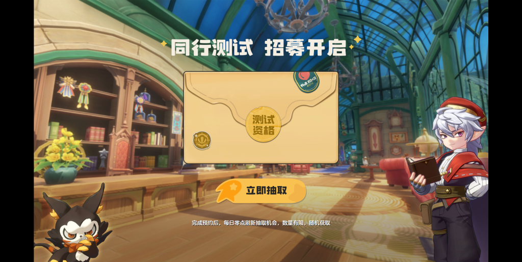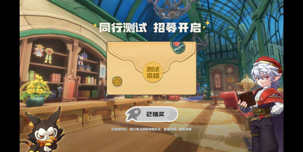 每天也可以抽取测试资格。每天零点刷新抽奖机会
