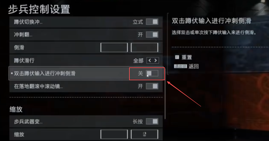 往下翻,还有一个“冲刺侧滑”的选项,记得把它关掉,这样你只要按一次下蹲键就能直接滑铲,反应更快。
