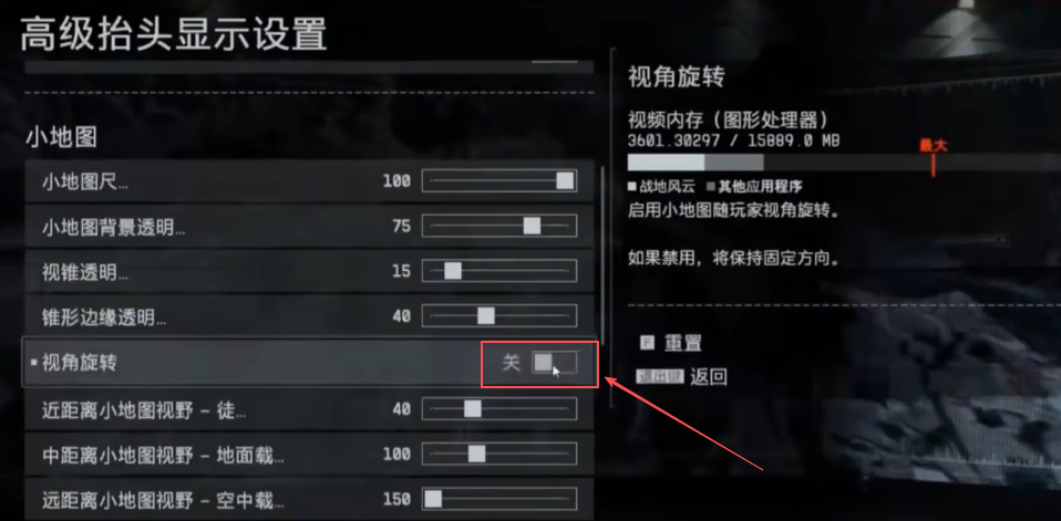 还有一个“视角旋转”的选项,建议关闭,这样你在快速转身瞄准的时候,画面就不会乱晃了。