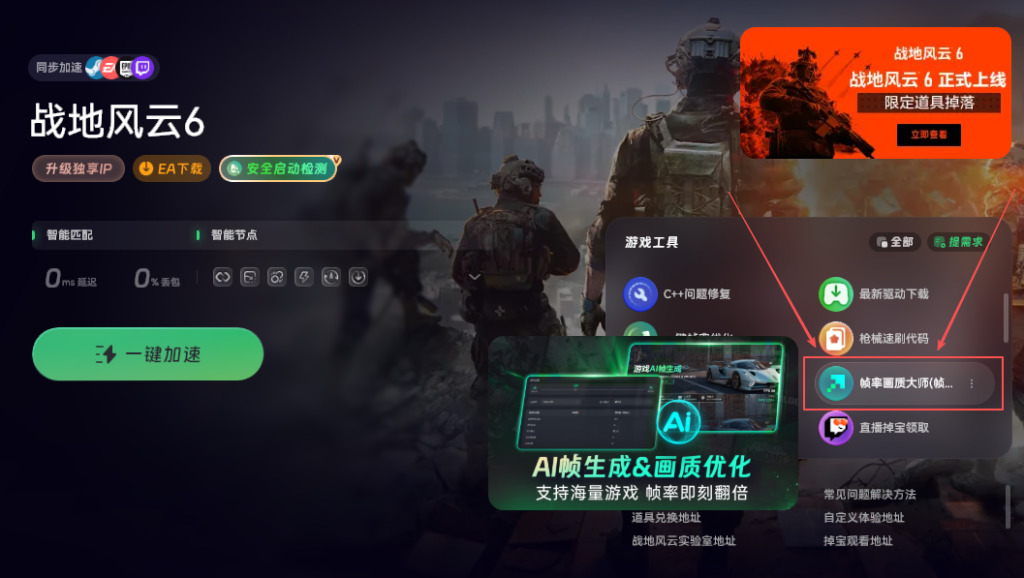 《战地6》作为射击游戏,网速不稳的话特别容易卡顿、延迟,甚至闪退。打开奇游加速工具,搜索“战地6”进行加速,能有效优化网络路线。