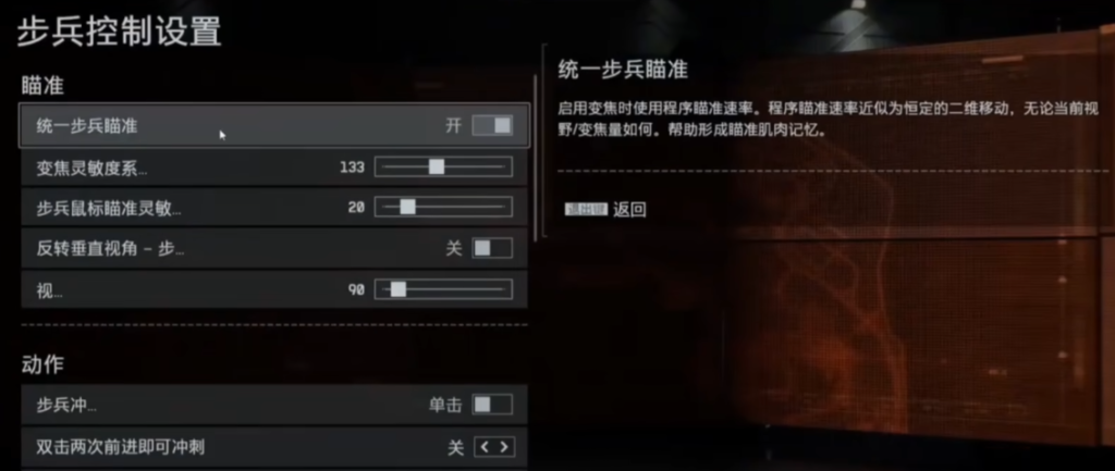 接着进入“控制设置”,找到“统一瞄准”这个选项,建议把它打开,这样你开镜和腰射时的灵敏度就会保持一致,操作更顺手。