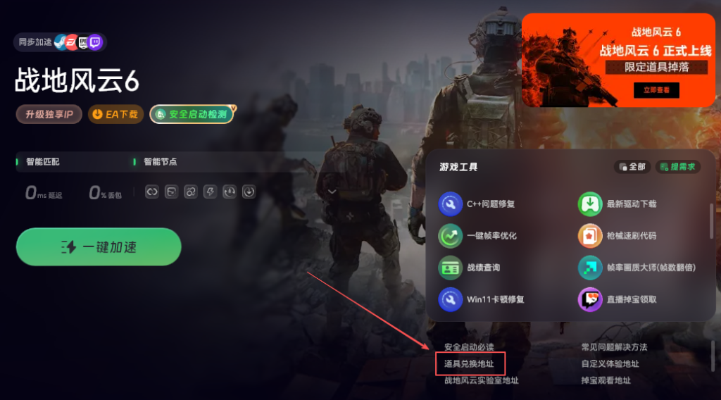接下来,在加速成功的页面右侧,通常会显示“道具兑换”或“CDK兑换”的按钮,点击它就会自动跳转到EA官方的兑换页面。