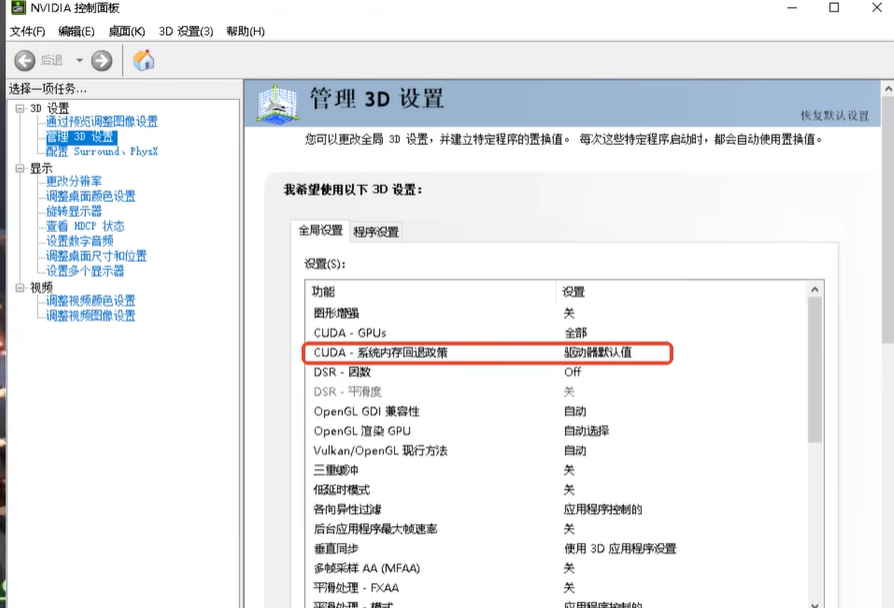 内存占用过多导致帧数骤降也是常见问题。使用N卡的玩家,可打开控制面板,在3D管理设置中找到内存回退选项,选择偏好系统内存回退应用。
