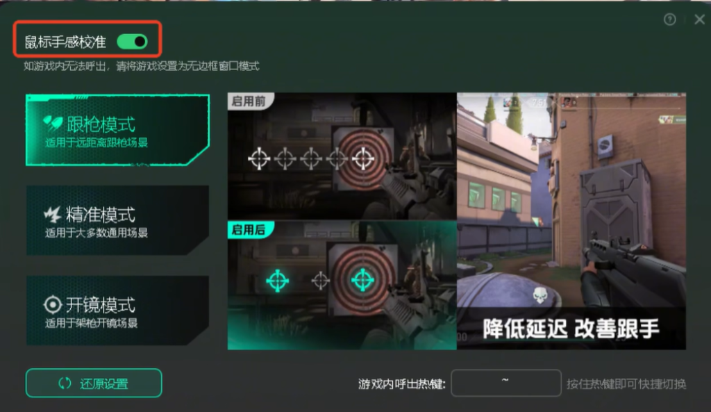玩侦察兵就选择对应的开镜模式;如果是其他兵种,跟枪模式或精准模式会是更好的选择。开启这些模式后再进入游戏,能明显改善跟枪手感,减少画面抖动和操作延迟。
