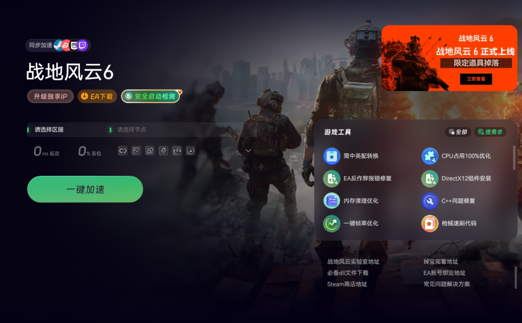 首先准备一款奇游加速工具,搜索战地6,在右侧找到最佳画面设置选项,一键就能轻松完成基础画面设置,为后续优化打下基础。