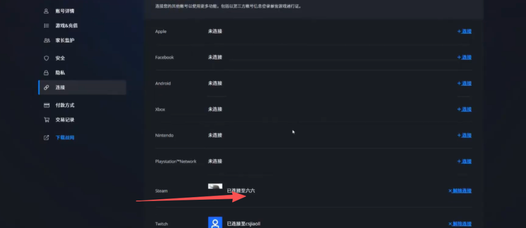 返回战网官网首页,登录已注册的账号。点击右上角头像进入”账号设定”,在左侧菜单选择”连接”选项。