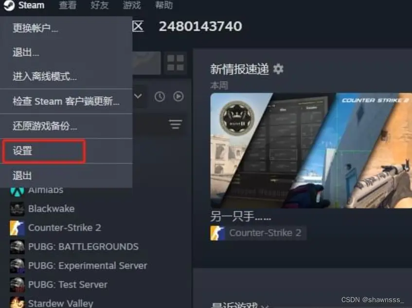 - 打开 Steam 客户端,点击左上角 “Steam” 选项,在下拉菜单中选择 “设置”,在左侧设置列表里点击 “下载”;