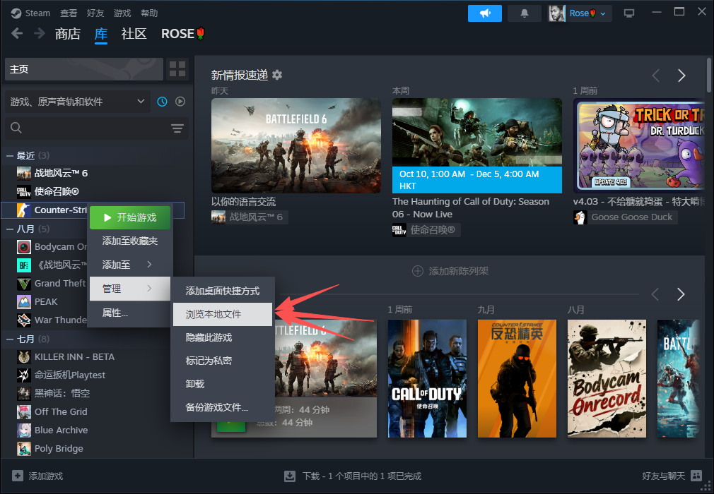 然后我们还需清理着色器缓存,右键游戏浏览本地文件