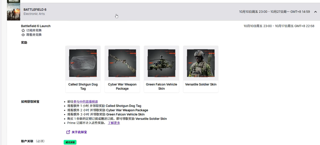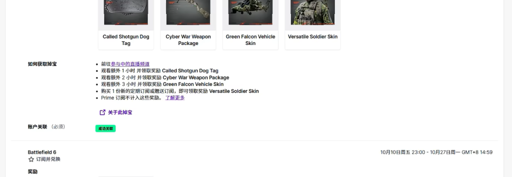 战地6掉宝皮肤奖励武器载具免费领取!战地6直播掉宝领取教程