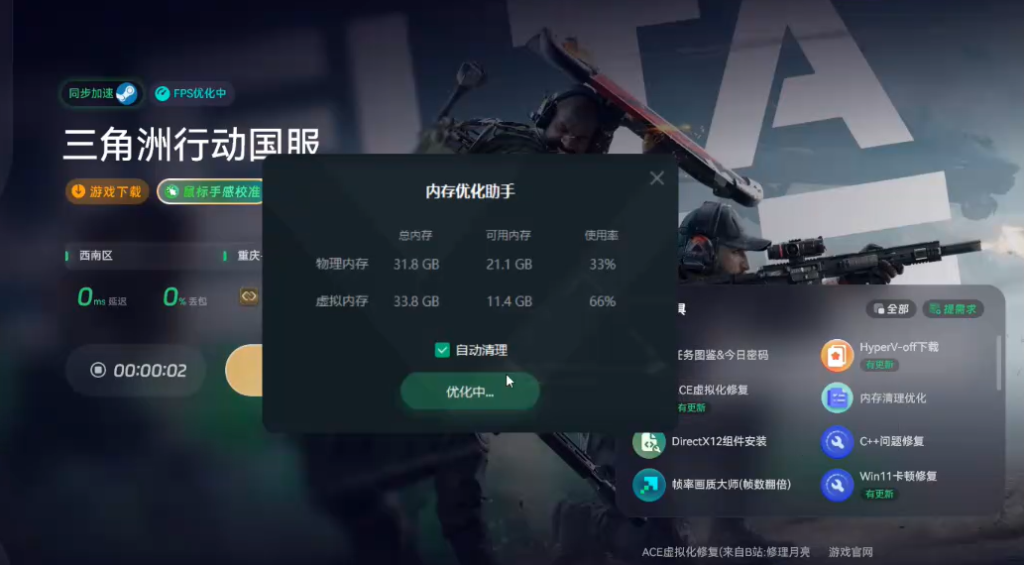 游戏崩溃闪退很多时候是内存爆满所致。手动清理内存较为繁琐,所以玩家们可以借助奇游加速工具的自动清理功能。点击内存清理优化,勾选自动清理内存就会在后台自动完成内存清理工作。
