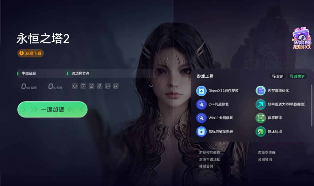 首先要准备好奇游加速工具,将其打开后,在搜索框中输入永恒之塔2,然后根据自己想要游玩的服务器进行加速操作。