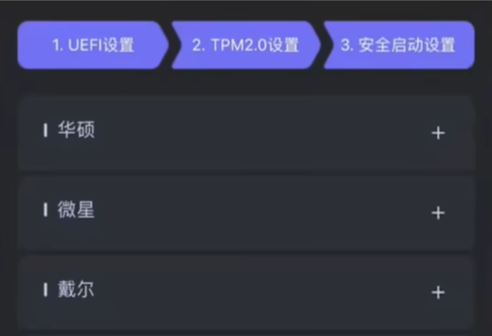对于安全启动设置的第二部分,玩家可扫描界面右侧区域,这里提供了各品牌主板的详细设置方法。