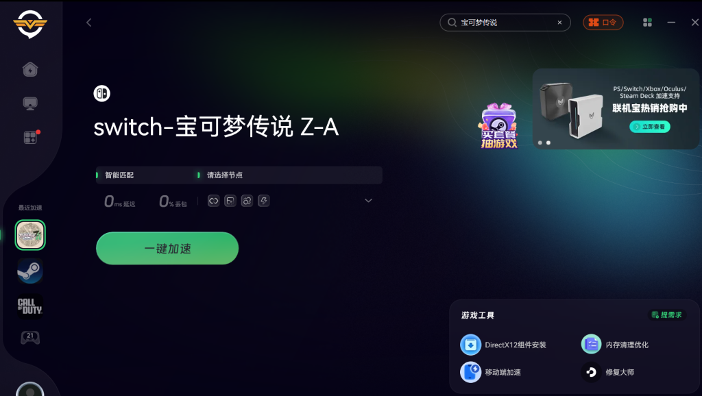 玩法上,玩家可在密阿雷市 “野生特区” 捕宝可梦,部分宝可梦用进化石触发 MEGA 进化;还需参与生态区规划提升评分,挑战 “ZA 登峰战” 兑换奖励。因游戏服务器在海外,国内玩家用奇游加速器可优化体验,下载后搜游戏或选主机平台,自动匹配节点,加速后能降延迟、解决卡顿,在口令兑换处输 “qy666” 可领 3 天时长。