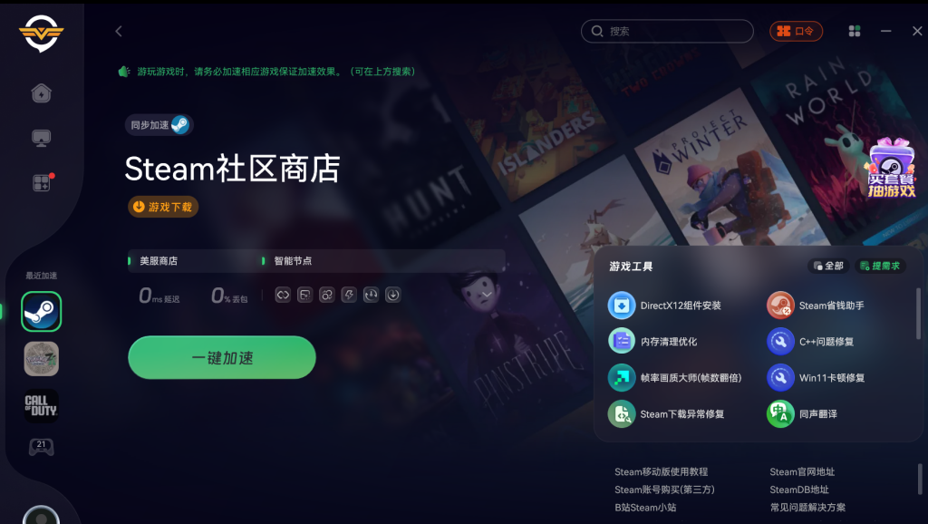首先推荐用奇游加速器优化网络链路。因 Steam 服务器多部署在海外,国内直连易受跨区域路由拥堵影响,导致连接失败。只需下载安装奇游加速器,打开后搜索 “Steam”,选择延迟低于 30ms 的本地优化节点,点击 “一键加速”,待弹窗提示加速成功后,保持加速器运行并重启 Steam,即可测试连接是否恢复,输入专属口令 “qy666” 还能免费领取 3 天会员。