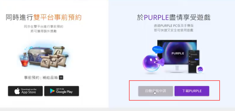 下一步是下载游戏。在预约页面往下拉,找到“下载Purple启动器”的按钮。