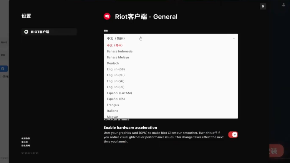 确认无误后,点击安装。安装完成后,系统会自动打开拳头启动器。进入拳头启动器后,点击右上角的头像,选择设置选项,在这里可以将语言更改为中文,方便后续操作。