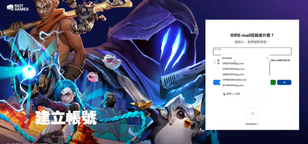 设置好语言后,点击创建账号,页面会跳转至拳头官网。在官网再次点击“建立账号”,填写有效的电子邮箱。