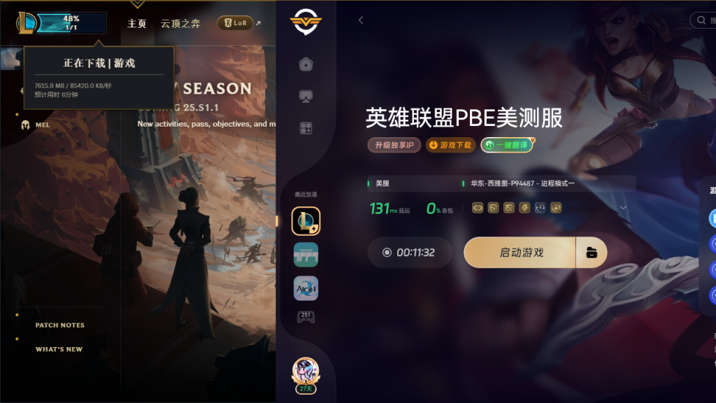 之后我们加速《英雄联盟PBE美测服》点击橙色的游戏下载