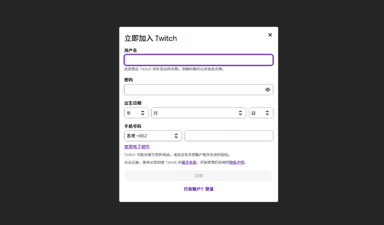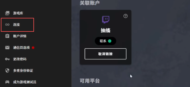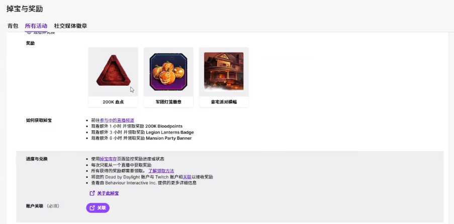点进去之后,登录你的《黎明杀机》游戏账号(没有就注册),然后在账号关联设置里,找到Twitch平台,点击绑定并按提示完成授权就可以了。