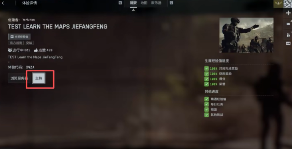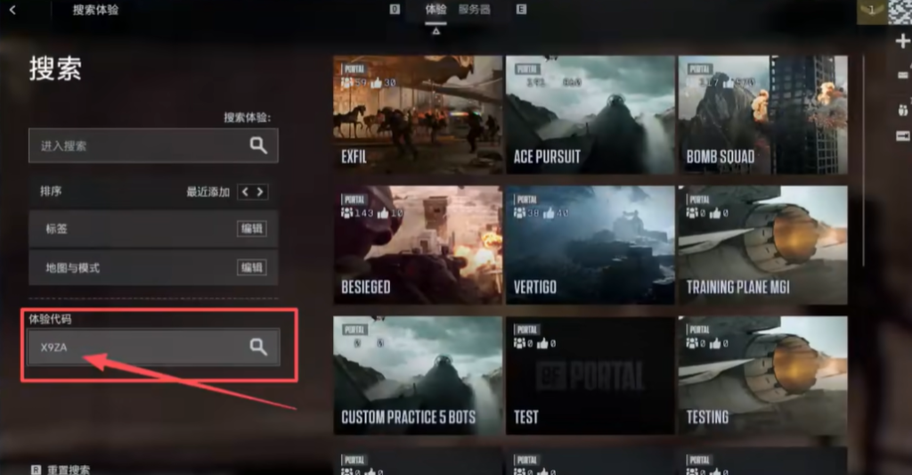 保存代码后进入游戏并点击社区栏中的“搜索体验”选项。在体验搜索框中输入之前保存的代码,选择想要速刷的模式代码进行输入。