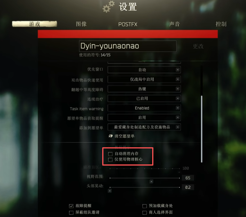 首先画面设置自动清理内存和仅使用物理核心不勾选